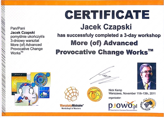 Moim celem zawodowym jest pomaganie ludziom w rozwiązywaniu ich problemów, i szukaniu metod kształtowania swojego życia tak, aby móc żyć szczęśliwie i realizować swoje wartości. W terapii stawiam na zrozumienie problemów i skuteczną pomoc = zaplanowanie i wdrożenie potrzebnej, korzystnej zmiany w życiu Klienta. Dlatego proponuję podejście elastyczne, głównie oparte na założeniach Terapii Skoncentrowanej na Rozwiązaniach z elementami terapii poznawczo-behawioralnej i ericksonowskiej. Moje doświadczenie i wykształcenie obejmuje: 1.Liczne interwencje indywidualne i grupowe w sytuacjach kryzysów zawodowych i osobistych. Zwykle dotyczy to stresu i/lub kryzysu np. spadku motywacji, wypalenia zawodowego, , podniesienia jakości komunikacji czy radzenia sobie z emocjami. Prowadziłem z powodzeniem mediacje czy naukę rozwiązywania konfliktów oraz wsparcie w procesach budowania (odbudowania) relacji w rodzinach i zespołach pracowniczych. Mam doświadczenie we wspieraniu ludzi w wychodzeniu z bardzo różnych trudnych sytuacji. 2. Specjalizację w psychologii kryzysu, zmiany. stresu i traumy, którą wybrałem podczas pięcioletnich studiów na kierunku Społeczna Psychologia Kliniczna na SWPS w Warszawie. 3. Dyplom magistra psychologii klinicznej i osobowości zdobyłem na WSB-National Louis University. 4. Licencję i certyfikat Trenera Komunikacji Transformującej, specjalizując się w komunikacji w trudnych emocjonalnie sytuacjach, rozwiązywaniu konfliktów (mediacje, negocjacje) i odbudowie relacji po konfliktach. 5. Mam też liczne certyfikaty potwierdzające inne kompetencje psychologiczne - coachingowe i terapeutyczne np. dotyczące terapii prowokatywnej, terapii poznawczo -behawioralnej itp itd. + od 2009 roku - mam doświadczenie w pracy indywidualnej z klientami + od 2001 - prowadzę warsztaty psycho - edukacjyjne dla osób indywidualnych i dla różnych grup zawodowych + CO ROKU od lata 1999 odbywam szkolenia, kursy i staże p one pozwalają mi doskonalić metody pomagania ludziom w efektywnym dokonywaniu potrzebnych zmian. Oferuję pomoc w zakresie: # Zarządzania stresem: 1.zmniejszenia negatywnego wpływu stresu 2. nauki w wykorzystywania go jako motywatora # Depresji # Wychodzenia z wypalenia zawodowego i profilaktyki w tym zakresie # Regulacji rytmu dobowego - wychodzenia z zaburzeń snu # Radzenia sobie z lękiem, tremą i nieśmiałością # Radzenia sobie z fobiami - dentofobia, lęk wysokości, fobie społeczne itd. # Problemy rodzinne i małżeńskie # Problemy związane z pracą i karierą # Terapia traumy w tym PTSD # Rozwój osobisty i zawodowy - potrzeby zmiany pracy, -zmiany w ścieżce kariery, -zmiana zakresu obowiązków, awans, -kompetencje managerskie i liderskie - trudności w relacjach - konflikty i ich rozwiązywanie - mediacje, negocjacje itp. Proponuję sesje konsultacyjne, coachingowe oraz terapeutyczne osobom, które: # Przechodzą przez różnego rodzaju kryzysy i potrzebują wsparcia. # Odczuwają obniżony nastrój lub brak motywacji. # Mają trudności w komunikacji z wybranymi typami osób lub w pewnych kontekstach. # Chcą lepiej radzić sobie ze stresem i jego negatywnym wpływem na zdrowie, relacje i skuteczność zawodową. # Obawiają się wypalenia zawodowego i chcą zbudować plan profilaktyki. # Już odczuwają objawy wypalenia i chcą wyjść z tego stanu. # Cierpią na bezsenność lub chcą zbudować zdrowe nawyki snu. # Odczuwają zbyt duży lub częsty dyskomfort z powodu nieśmiałości lub braku pewności siebie. # Odczuwają zbyt nasilony lub długotrwały lęk w sytuacjach społecznych, np. wystąpień publicznych. # Mają obniżoną motywację do wykonywania codziennych obowiązków. # Chcą zwalczyć prokrastynację i zbudować sobie zdrowe nawyki dotyczące organizacji dnia # Mają trudności z budowaniem zdrowych, konstruktywnych relacji zawodowych i osobistych. # Zmagają się z konfliktami i chcą lepiej radzić sobie w takich sytuacjach. # Chcą poprawić swoją asertywność i umiejętności komunikacyjne. # Chcą odczuwać więcej szczęścia i satysfakcji z życia. # Chcą nauczyć się pokojowego rozwiązywania konfliktów i skutecznego negocjowania. # Chcą lepiej poznać siebie, wzmocnić poczucie własnej wartości i mieć zdrową samoocenę. # Czują brak równowagi życiowej, np. podejrzewają u siebie pracoholizm. # Chcą poradzić sobie z lękami i fobiami. # Odczuwają pogorszenie jakości życia i nie wiedzą, jak sobie z tym poradzić. # Doświadczają negatywnego wpływu silnych emocji, z którymi chcą lepiej sobie radzić. # Mają stany depresyjne i/lub myśli samobójcze. # Nie odczuwają satysfakcji z życia z powodu bolesnych przeżyć. # Są przemęczone i mają poczucie wypalenia. # Przeżyły traumę i podejrzewają lub wręcz wiedzą, że nadal odczuwają jej negatywny wpływ na swoje życie. # Potrzebują wsparcia w zaakceptowaniu swojej orientacji seksualnej lub planują coming-out. # Mają problemy z koncentracją, nadpobudliwością i nerwowością. # Chcą lepiej organizować swój czas. # Szukają metod relaksacji i spokoju wewnętrznego. # Przechodzą kryzysy w związkach lub ważnych relacjach. # Szukają właściwego partnera, partnerki. # Mają trudności z akceptacją własnego wyglądu. # Potrzebują wsparcia w zmianie nawyków zdrowotnych - sen, rytm dobowy, nawyki żywieniowe, odpoczynek itp. # Szukają pomocy w planowaniu i zmianach w obszarze kariery zawodowej. # Chcą pełniej wykorzystywać swój potencjał w życiu osobistym i zawodowym. Prywatnie jestem szczęśliwym mężem i ojcem. Kocham ludzi, psy i góry. Zapraszam na pierwszą sesję, żeby móc zdecydować czy chcesz ze mną rozpocząć pracę nad swoim lepszym życiem.